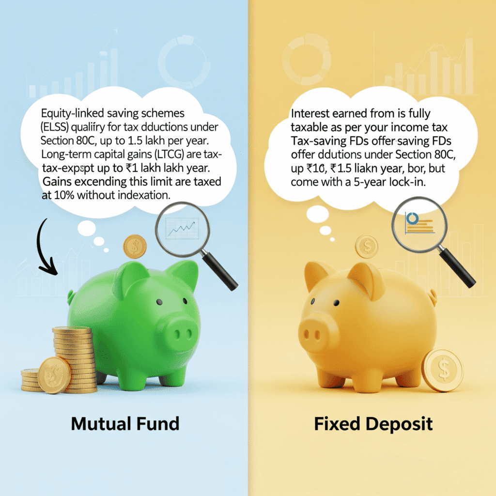Taxation is another crucial factor in the mutual fund vs fixed deposit tax benefits debate.
